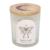 Das mattierte Glas zeigt ein Design mit einer Luna-Motte und wird durch einen Korkdeckel ergänzt und mit klaren Quarzkristallen akzentuiert, die die Klarheit des Geistes und die Intuition für Manifestation und Entspannung verbessern.