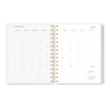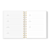 Für eine schnelle Navigation enthält der Planer Seitenausschnitte mit Monatsnummern an der Seite der Seiten. Hinten findest du Notizseiten, um Ideen, Aufgaben oder Reflexionen festzuhalten. Der Einband ist mit einer metallischen Folienprägung versehen, die dem Design einen Hauch von Luxus verleiht.