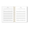 Dieser Planer erstreckt sich über 12 Monate und bietet Jahresübersichten, eine inspirierende 100-Tage-Herausforderung, eine Weltkarte und spezielle Listen für Bücher, die man lesen möchte, Filme, die man sehen möchte, und Geschenke, die man geben möchte.